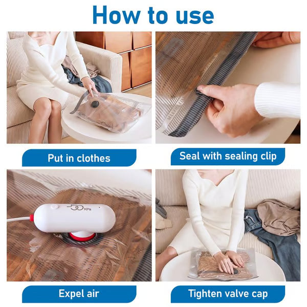 USB Powered Vacuum Pump: Experience effortless compression wherever you go with our USB vacuum pump. Connect it to your mobile power supply or laptop for on-the-go compression