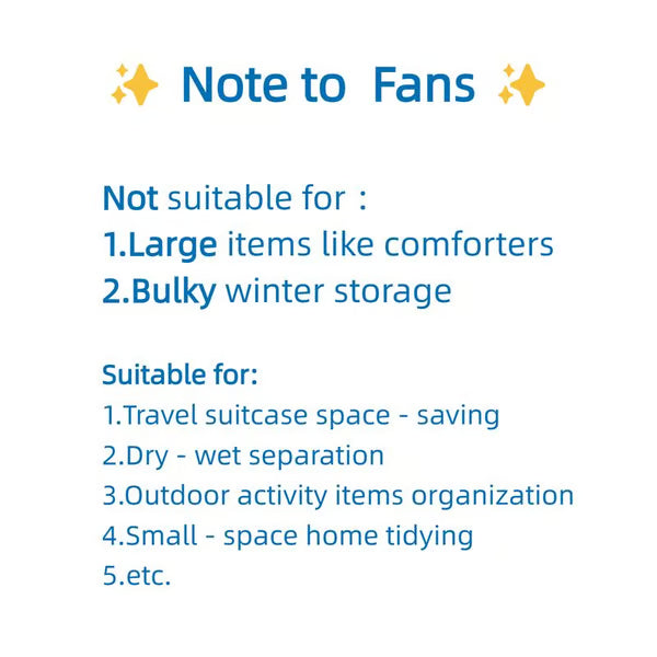 PA+PE Material: The storage bags crafted with a blend of PE+PA materials, ensuring lasting durability and reliable protection for your belongings